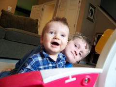 We took pictures this afternoon when the sun came out. Here they are, my boys. They're pretty much like this all the time. Smiling, giggling, and happy. They're the best.
