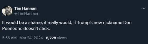 Whoever came up with Don Corleone's idiot bankrupt cousin's name Don Poorleone is today's best thing on the internets. If this was you Tim Hannan, bravo!
